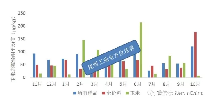 从历史数据来看,10月份玉米赤霉烯酮污染程度较前几个月稍有加重。