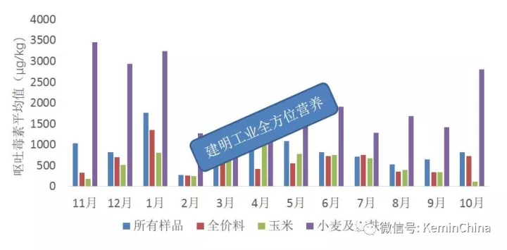 从历史数据来看,10月份呕吐毒素持续了较严重的污染水平,尤其是麦麸。
