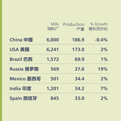 7大饲料生产国可以被视为是农业发展趋势的晴雨表。今年,通过比较这些产量大国与其他国家饲料总产量的比率,我们可以看出他们对整个行业的重要性: