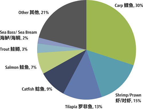 在拉丁美洲,产量增幅最大的是巴西、智利和秘鲁。而在中东地区,伊朗脱颖而出,贡献了该地区几乎所有的增长。水产饲料产量最大的是鲤鱼饲料,其次分别虾和罗非鱼饲料。榜单上还有鲶鱼、大马哈鱼和鲑鱼饲料,尽管增幅较小。