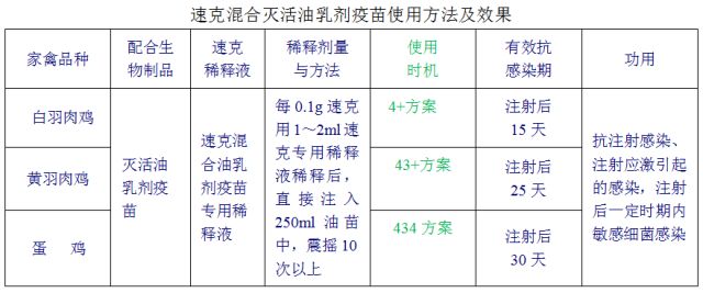 1、 速克®配合鸡灭活疫苗使用,可有效控制自灭活疫苗注射后2~4周内大肠杆菌等敏感菌感染。