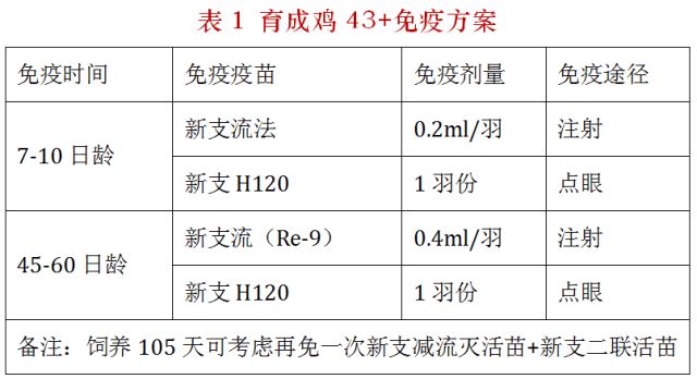 43+育成鸡免疫方案在国内很多鸡场得到应用,多批次育成鸡成功饲养的实践证明如下事实: