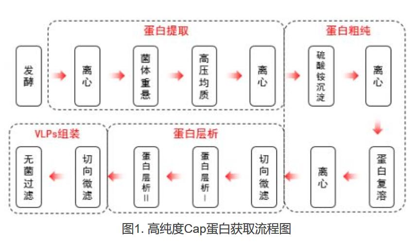 Cap蛋白经过表达、粗纯后,其中仍含有大量大肠杆菌的蛋白、核酸、细胞碎片等杂质,这些杂质会影响病毒样颗粒的形成,导致产生不完整和不规整的颗粒,同时也会影响疫苗的免疫效力。获取高纯度的蛋白是做好疫苗的首要难点之一。