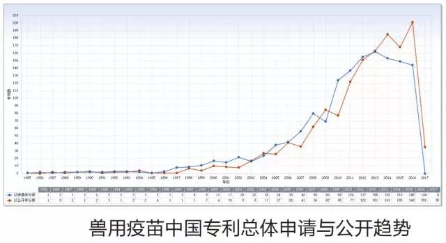 文章中用大量数据对兽用疫苗中国专利近 30 年来的申请与公开趋势作出了分析。
