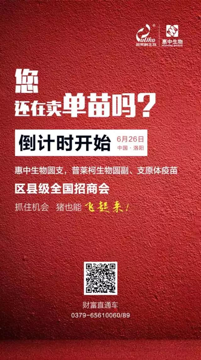 惠中生物圆支,普莱柯生物圆副、支原体疫苗区县级全国招商会倒计时开始
