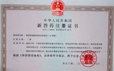 哈药疫苗获世界首例重组新城疫病毒(A-VII株)灭活疫苗新兽药注册证书