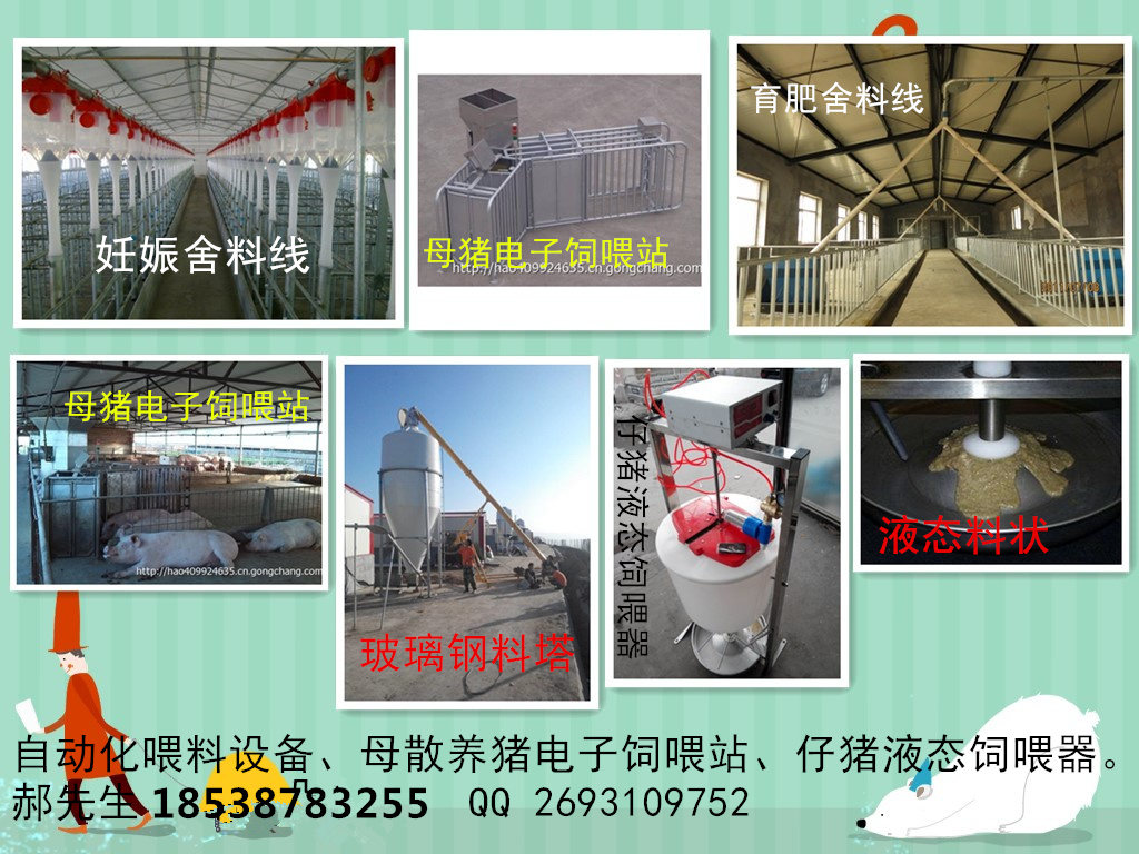 主营母猪电子饲喂站、猪场自动化料线、仔猪液态饲喂器等猪场自动化设备。电话:18538783255,欢迎来电。