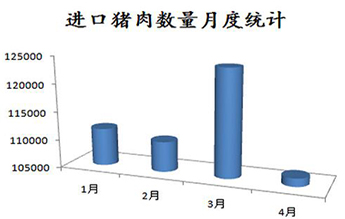 据海关数据显示,2017年4月进口猪肉数量为10.6万吨,环比3月减少14.16%,1-4月进口肉数量累计达到45.3万吨,主要由于国内生猪价格的连续下滑以及需求市场逐渐转淡。【详细】